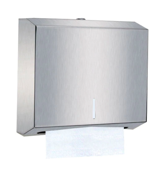 Dispensador de Toalla Interfoliada resistente, mucho más atractivo y con un elegante acabado en acero inoxidable. Perfecto para ser usado en consultas clínicas, baños, camarines y/o cocinas. Diseñado para obtener una hoja a la vez sin la necesidad de tocar el dispensador, aumentando su rendimiento.