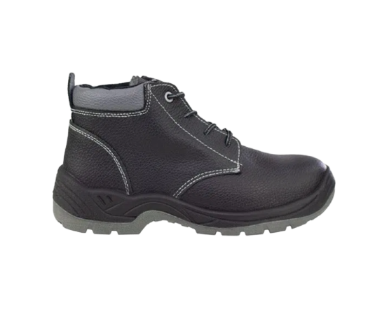 Color negro, entre plantilla antipunzonante de acero según norma chilena Fabricación con inyección directa al corte Forro split y descarne gamuzado Ojetillos, pasa cordones y ganchos no metálicos. Planta de poliuretano bidensidad resistente a los derivados de los hidrocarburos. Puntera de acero diseño W/H (alta y ancha) Suela Antiperforante, Capellada cuero. Dieléctrico.